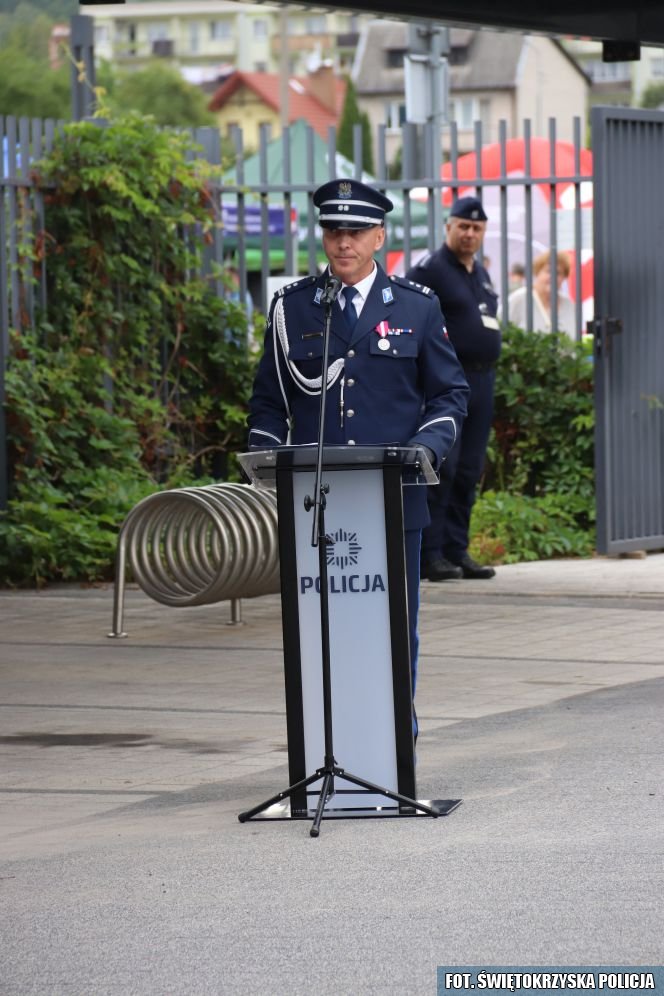 W czwartkowe przedpołudnie skarżyscy policjanci uroczyście obchodzili swoje święto. Powiatowe obchody Święta Policji rozpoczęły się mszą w Parafii pw. Św. Rocha w Mroczkowie, a dalsza ceremonia odbyła się na placu apelowym skarżyskiej komendy. W uroczystościach udział wziął Zastępca Komendanta Wojewódzkiego Policji w Kielcach mł. insp. Marcin Chatys a także samorządowcy, przedstawiciele wojewódzkich i lokalnych władz, miejscowych instytucji oraz rodziny policjantów.