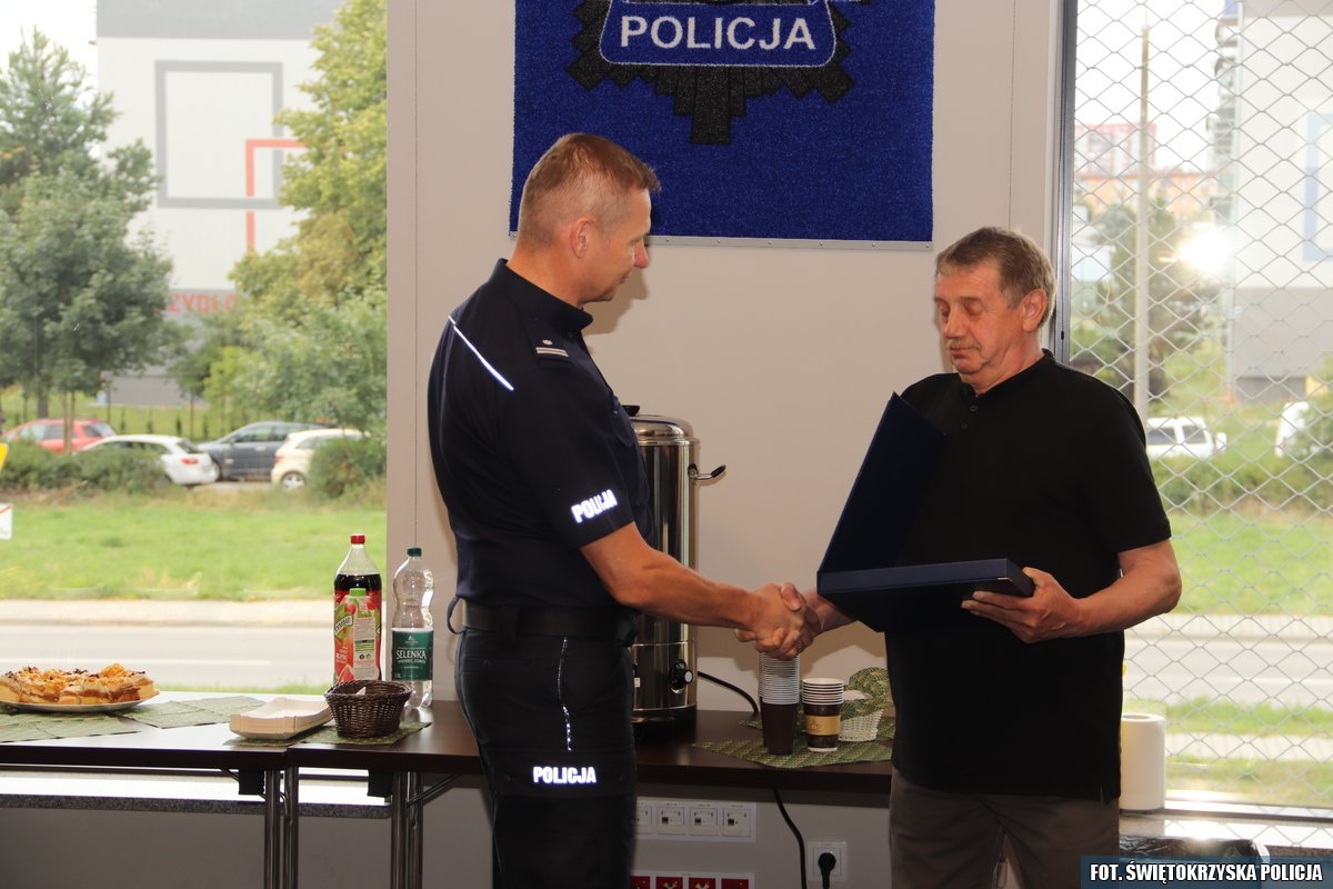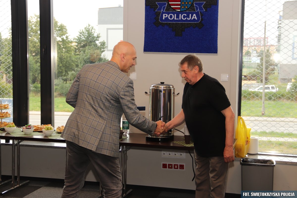 Uroczystość była okazją do podziękowania za ogromny wkład w codzienne funkcjonowanie jednostki oraz za wieloletnią, oddaną i rzetelną pracę na stanowisku konserwatora skarżyskiej komendy. W wydarzeniu uczestniczyli Komendanat Powiatowy Policji w Skarżysku-Kamiennej mł.insp. Paweł Szczepaniak, jego zastępca, naczelnicy wydziałów, kierownicy, funkcjonariusze policji, pracownicy cywilni oraz najbliższa rodzina naszego kolegi. W ramach podziękowań pan Marek Gajewski otrzymał pamiątkowy upominek. Nie zabrakło wspomnień, ciepłych słów oraz wzruszeń. Koledzy i współpracownicy życzyli mu dużo zdrowia, odpoczynku oraz realizacji osobistych pasji i planów na nowym etapie życia.