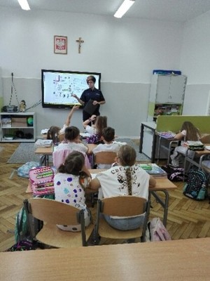 Nie zabrakło również rozmów na temat bezpieczeństwa w kontaktach z nieznajomymi, odpowiedzialnego korzystania z telefonów komórkowych i Internetu, a także właściwych zachowań w sytuacjach zagrożenia. Policjanci starali się w przystępny sposób uczulić najmłodszych, jak ważne jest zachowanie ostrożności i rozwaga w codziennym życiu. Dzieci miały również możliwość zdać pytania dotyczące pracy policji, co spotkało się z dużym zainteresowaniem.