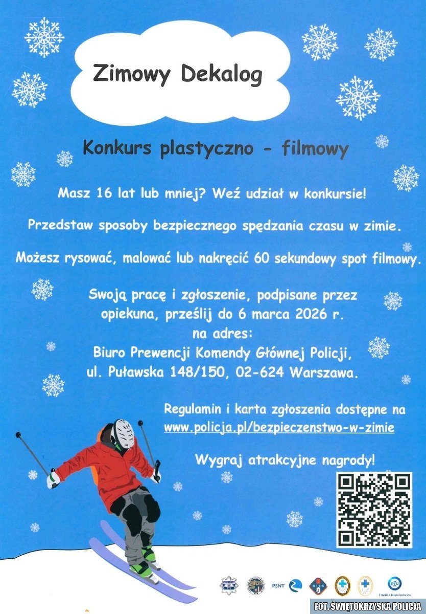 Przypominamy także, że w ramach ogólnopolskiej kampanii „Kręci mnie bezpieczeństwo w zimie” do 6 marca br. można przesłać swoją pracę i zgłoszenie podpisane przez opiekuna do ogłoszonego konkursu plastyczno-filmowego pn. „Zimowy Dekalog”, gdzie na laureatów czekają bardzo atrakcyjne nagrody.