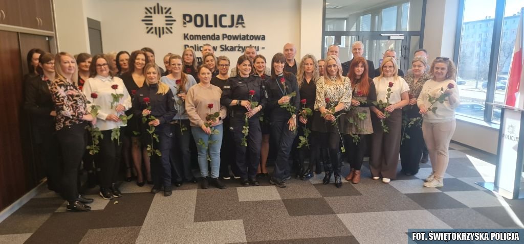 Punktualnie w samo południe na sali konferencyjnej Komendy Powiatowej Policji w Skarżysku-Kamiennej zebrały się panie pracujące i pełniące codzienną służbę w jednostce. Z okazji Dnia Kobiet najserdeczniejsze życzenia w imieniu własnym i wszystkich mężczyzn zatrudnionych w komendzie złożyli przedstawiciele kadry kierowniczej na czele z Komendantem Powiatowym Policji w Skarżysku-Kamiennej mł. insp. Pawłem Szczepaniakiem, a także policyjni związkowcy. Każda z pań został obdarowana różą.