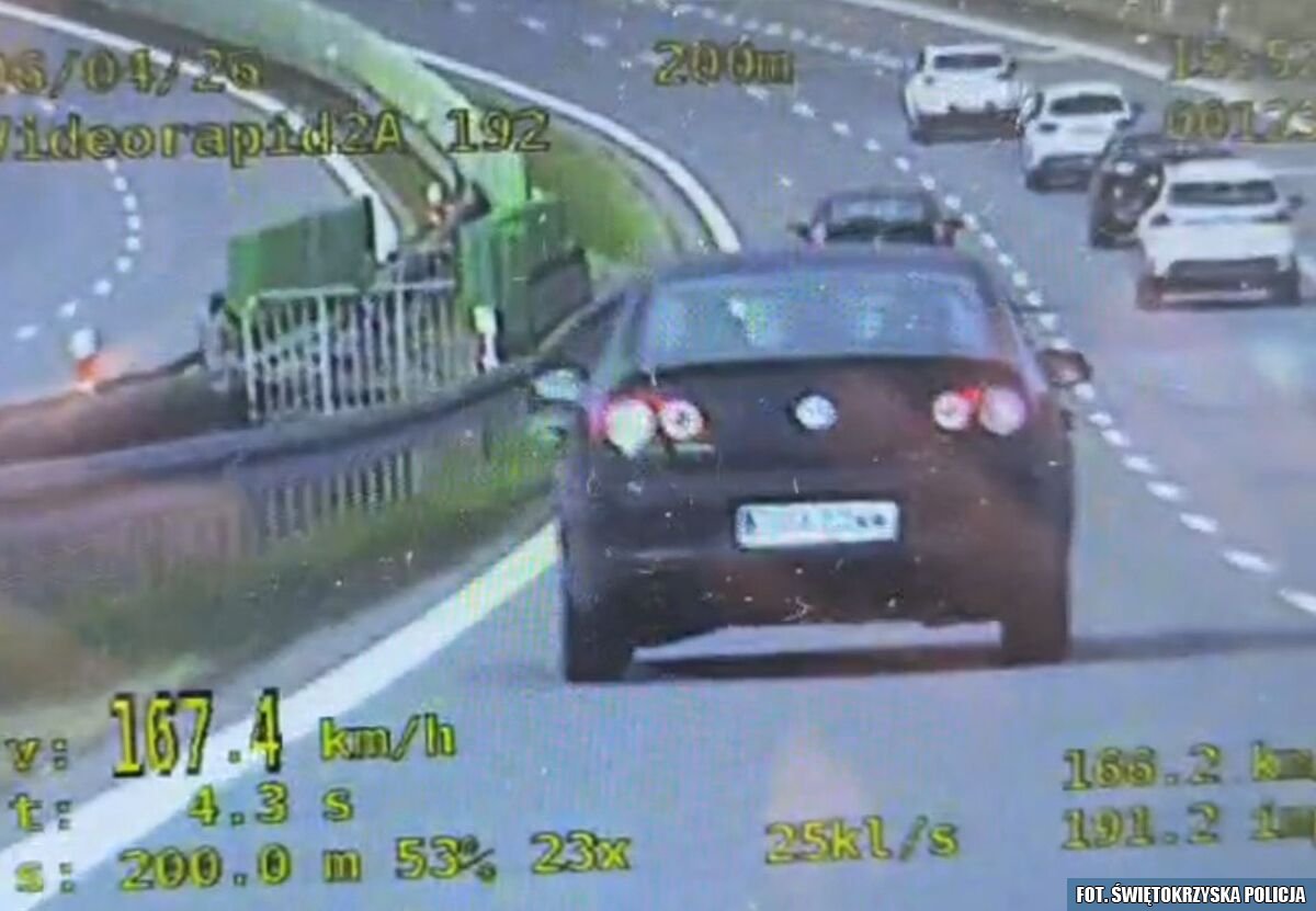 Zaś w poniedziałek na policyjnym mierniku prędkości, zapisał się 34-latek, kierujący pojazdem marki VW. Mężczyzna w miejskości Suchedniów przekroczył na drodze ekspresowej prędkość o 47 km/h jadąc z prędkością 167 km/h. W tym przypadku mieszkaniec województwa świętokrzyskiego musiał liczyć się z mandatem w wysokości 2 tysięcy złotych i 11 punktami karnymi. Dodatkowo z uwagi na brak aktualnych badań technicznych, funkcjonariusze zatrzymali dowód rejestracyjny pojazdu.